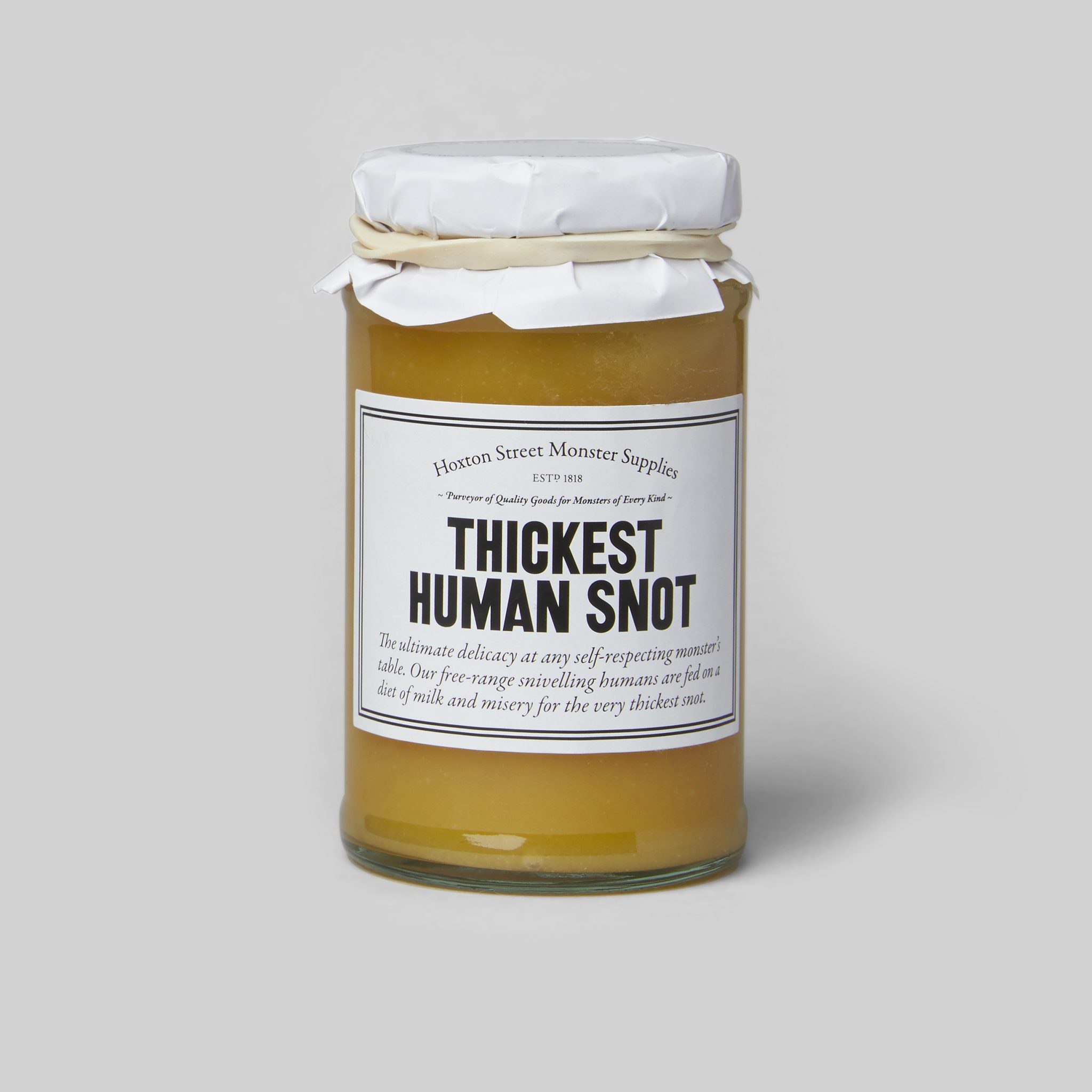 - Thickest Human Snot – A classic product that’s been made and sold right here on Hoxton Street since 1818. Human’s report it tastes a little of lemon curd….